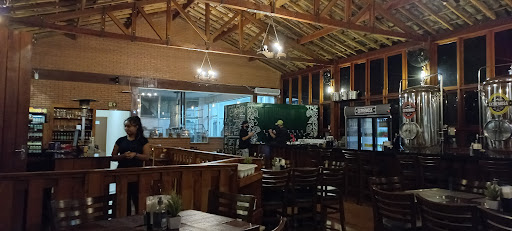 Read moreMuito boa cervejaria, com grande variedade de tipos de cerveja. Posso falar das que tomei, Irish red Ale(perfeita) e da Pilsen (honesta). Porções de batata com bacon e de mandioca muito boas. E o dono, ou gerente, muito simpático e agradável, ainda nos permitiu beber com a promoção Double chopp na Pilsen em dia fora de promoção. O ambiente é muito agradável, todo em madeira e com pé direito alto. Balcão com torres de chopp muito bonito, embora um pouco exagerado, tirando espaço de mais mesas do lado de dentro (muito procurado em dias frios). Dois caras muito experientes e ótimos, tocando só clássicos do rock(até América tocaram - em volume baixo, sem atrapalhar nossa conversa) que sempre agrada muito, uma vez que só se ouve sertanejo ou pisadinhas em todo lugar que se vai. O serviço foi bem correto, sem surpresas, exceto na hora de pagar, qdo descobrimos uma atendente impaciente e pouco simpática, chegando a gerar constrangimento por suas caras, bocas e frases fora de hora e lugar, isso porque estávamos aumentando o valor da conta, levando o ótimo licor de malte produzido pela casa. Imaginem se estivéssemos contestando o valor da conta. Parecia que era a dona do local e já estava de saco cheio naquela noite, tratando a todos que saem como bêbados. Dessa vez ela errou. Voltarei durante o dia pra beber nas mesas externas, o que não foi possível por...