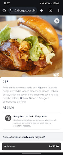 Comprei pela primeira vez, uma delícia, só uma questão que acredito que falta no site pra melhorar, quando vai pedir o hambúrguer tinha que ter a opção obrigatória do ponto da carne, peguei o lançamento de cheddar mto bom, só falto a carne estar mais suculenta e mais temperada, estaria perfeita, uma estava mto passada e outra carne ao ponto, infelizmente acabou ficando um hambúrguer seco pq não tem nada dentro a não ser a carne, achava que vinha com cheddar dentro tb e só vem fora, fica minha dica para melhorar, de resto perfeito, próxima vez que pedir irei pedir a carne mal passada ou no ponto para vir suculenta, está aprovado, mto bom, batatinha perfeita, a e a sacola trouxe 2 lata rasgou e caiu no chão, poderia reforçar a sacola, de resto ok, só dei...