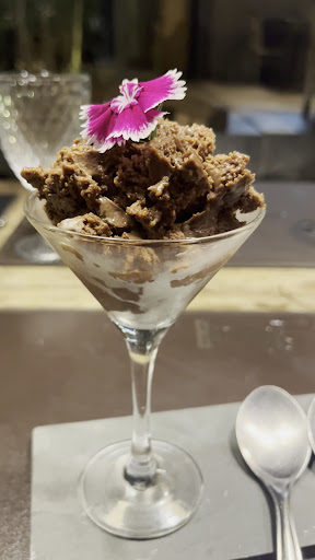 O atendimento foi impecável, com todos os funcionários sendo muito simpáticos. Mas o mais incrível para nós, foi que fomos recebidos com taças de espumante rosé e uma mensagem especial escrita no prato nos desejando felicidades pelo nosso aniversário de casamento – um mimo que fez toda a diferença!