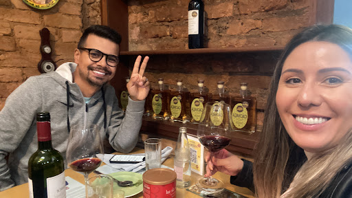 Acompanhamos tudo com o vinho da casa, que nos surpreendeu pela qualidade. Combinação perfeita!
