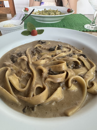 Read moreLugar super agradável. Praticamente dentro da floresta, com direito a um riacho que dá o fundo musical ao ambiente verde. Comida excelente e as massas, prato forte da casa, são feitas no local. Os outros pratos também não ficam para trás. A truta estava deliciosa, o que não é fácil em um lugar onde esse peixe é especialidade de todos os restaurantes. Carta de vinhos boa. Sem nenhum diferencial, mas com preços excelentes, no nível de supermercado. Tem uma lareira na parte interna, muito útil nas noites frias de Penedo. Fica uns 5 ou 7 minutos afastado do centro gastronômico de Penedo e os 200 metros finais são de estrada de terra, mas nada que atrapalhe. Recomendo a visita, especialmente em um dia de sol. Peçam para a proprietária Mariza uma das mesas externas, à beira do...