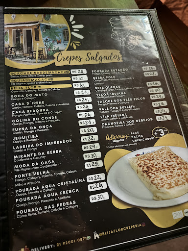Read moreAmbiente muito agradável. Bonito, bem cuidado, música ambiente, atendimento impecável, valores justos. Tudo é muito gostoso! Os crepes doce e salgado, o fondue doce, o salgado, os sucos. Tudo de primeira qualidade. Atendimento muito ágil! Local lindinho demais. Numa esquina de movimento bem fraco de carros, bem iluminado. Melhor experiência de gastronomia em Cachoeiras. Tudo lindo Crepes variam de 25 a 35 reais. Fondue doce 50 Fondue salgado 60 Caldos a partir de 30 e poucos Suco...