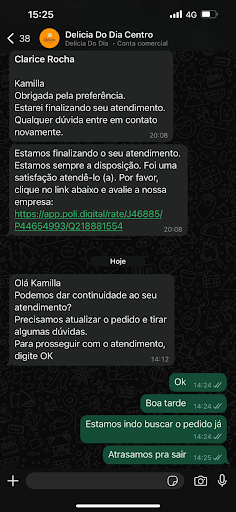 Read morePessima experiencia, minha esposa fez uma encomenda e quando chegamos a atendente disse que tinha VENDIDO NOSSA ENCOMENDA pois não tínhamos atendido o WhatsApp, porém está claro na conversa que respondemos sim! Como que uma empresa desse tamanho vende o mesmo produto duas vezes??? Anexo o print...