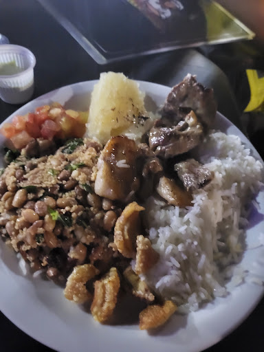 Quanto ao alimento: espetinhos de variados sabores, bem assados e temperados e mandioca de qualidade.