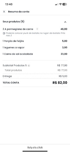 Pedi para Delivery 02 parmegiana 01 carne de sol acebolado, 01 porcao de legumes, 01 porção de feijão. E infelizmente o pedido chegou com quase 2h depois, SEM o feijão e SEM a batata frita (no menu estava arroz e batata frita no parmegiana, pedi para trocar a batata para o purê e fui informado que o purê não tinha no momento) e para minha surpresa, o baião do bife acebolado veio como baião cremoso e sendo que na descrição do menu estava a opção arroz ou baião (não tinha o nome baião cremoso) e sendo que a pessoa que iria comer é intolerante a lactose, e outra observação é que a comida veio com mto pouco arroz, mas as carnes...