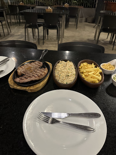 O Nossa Parrilla mudou de local. Eu confesso que preferia o ambiente anterior, mas o atual também é muito bom. Tive uma boa experiência com a comida, desde a apresentação do prato ao sabor, ainda que eu citaria a temperatura como um ponto que pode melhorar. No meu caso, eu gostaria que o macarrão estivesse mais quente, porém não é algo que invalide a experiência. Há quadras de beach tênis no local e os garçons...