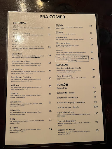 Péssima, o ambiente muito escuro todo preto pouca iluminação (parece querem esconder algo) dai apareceu um sujeito no meio do breu com um chapéu de boiadeiro jogou um cardápio em cima da mesa e como num passe de mágica desapareceu, depois apareceu um garçom e perguntou se alguém tinha explicado a casa (só tinha nos no local e ele viu nos entrando e o misterioso jogar o cardápio e desaparecer) mais fez o papel dele e explicou, como não estava com muita fome e os lanches são absurdamente caros pedi um X salada (pão hambúrguer alface tomate milho e ervilha) absurdamente caro mais tudo bem, (vírgula) pasmem o hambúrguer e de supermercado daqueles de de 0,50 centavos cada, hambúrguer da casa só nos lanches caros, 65,00 reais por um lanche só porque o cara fez um hamburguinhos, duas pessoas 130,00 mais as bebidas acabamos indo em uma pizzaria gourmet e pagamos a pizza para duas pessoas 65,00 sobrou...