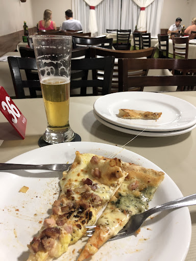 Dizer que a pizza é HORRÍVEL é um elogio! Sério, nunca na minha vida comi pior! A pizzaria não é das piores, os garçons e atendentes são ótimos, o buffet é ruinzinho mas tem várias opções, as comidas além da pizza que vem no rodízio nem comi porque a cara tava feia o gosto eu não quis nem arriscar! Caríssimo !!! 60,00 na minha cidade vou num rodízio top com bebida e porções “de verdade” incluso! Procurei outros lugar pra comer mas não achei, se um dia eu voltar em São Bento compro miojo no mercado mas não volto lá! não iria se fosse de graça, e não recomendo nem pra um inimigo! A pizza e seca, quase não tem recheio e as que tem.. não tem gosto de nada. ela parece pizza de caixa (sadia, seara) que compra congelada no mercado (só que 200 vezes mais ruim!) e o pior foi o preço! Fala sério!! gastamos mais de 100 em dois pra comer um negócio que de verde.. não vale 20! Se fosse 20,00 por pessoa ainda seria absurdamente caro pela ruindade da coisa! Não vá! Vai...
