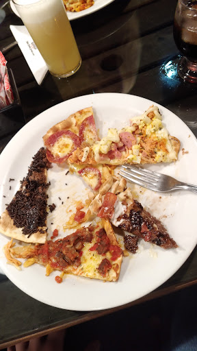 Já o rodízio de pizzas é um capítulo à parte! A cada poucos minutos, os garçons trazem uma nova opção de pizza à mesa, e há sabores para todos os gostos. Das pizzas tradicionais, como calabresa e quatro queijos, até as mais ousadas e criativas, todas as pizzas são servidas quentinhas, com a massa no ponto certo e com coberturas generosas. A variedade de sabores doces e salgados é excelente, com opções de dar água na boca, garantindo que cada cliente encontre suas preferências.