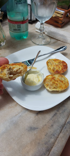 Pedimos a Empada de frango caipira que veio acompanhada com um catupiry, vem de 3 a 6 unidades, pedimos somente 3 para poder comer outra coisa depois. Ela não estava nenhum pouco seca, pelo contrário, super suculenta e o catupiry deu o toque final. Mas, o pão de queijo de Linguiça com queijo Canastra foi um show a parte a gente não estava esperando um pão de queijo daquele, era quase um hambúrguer. Eles abrem o pão de queijo bem na parte superior, deixando a massa na parte de baixo, e a tampa fica bem crocante. Além disso, ele veio acompanhado de um molho de alho e molinho de pimenta biquinho maravilhoso, pra gente foi a cereja do bolo. Simplesmente delicioso, recomendo demais experimentar o pão de queijo. A gente queria experimentar também o sorvete com doce de leite, só que o sorvete de creme tinha acabado e só tinha de chocolate, como a gente foi na parte da tarde do domingo, fazia sentido não ter mais.