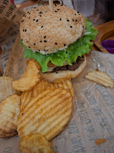 Hambúrguer gostoso, porém poucas variedades para escolher. Demora muito para chegar!!! E sempre que pedíamos uma posição para os funcionários sempre falavam que tinham “tantos” pedidos na frente, sendo que pelo que observei eles tem delivery também, portanto, colocam os pedidos deles na frente e quem está ali, presencialmente fica esperando horas. Reclamamos (três vezes) do ar condicionado, que estava encima da nossa mesa, deixando um ambiente desconfortável e a funcionária simplesmente ignorou nosso pedido. Tem MUITO a melhorar! O atendimento ao cliente está péssimo e a demora para comer...
