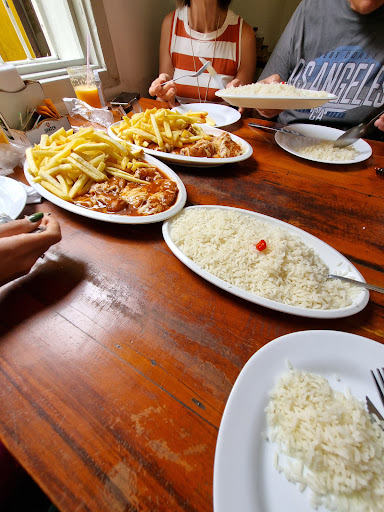 O prato bem saboroso, as batatas bem sequinhas e fritas. O arroz achei um pouco com alho demais para meu gosto.