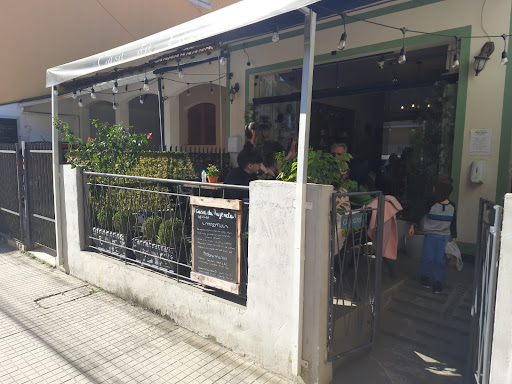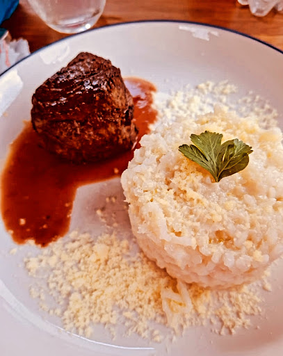 O local é pequeno, porém aconchegante. Fomos para almoçar e sentamos na varanda (4 adultos e 1 criança). Decoração bem bonita. Para beber, tomamos cerveja, que estava geladíssima. Minha mãe tomou uma Mimosa e disse que estava deliciosa. Os pratos, à la carte,são deliciosos também, com destaque para a truta grelhada, saborosíssima, no ponto certo. Não tinha no cardápio, mas pedimos um petisco e nos ofereceram queijo parmesão da região e também estava ótimo. Em resumo, o atendimento é excelente, a comida perfeita. Fica na rua mais charmosa da cidade. O banheiro limpíssimo. Recomendo muito a visita. (vimos que também servem sorvete e cafés, porém...