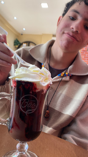 Read moreFui conhecer a cafeteria pela indicação do Ventura Balonismo. Para minha surpresa encontrei uma pessoa da equipe de balonismo que trabalha na cafeteria e no final encontrei quase que a equipe toda do Ventura. Ela fica logo na entrada da Vila do Açaí, no calçadão de São Lourenço. É um local pequeno, com mesas dentro e fora, mas com um ambiente muito agradável. Não possui música e nem estacionamento e é muito bem limpo e conservado. O atendimento é ótimo, cordial, educado e eficiente, bem compatível com o local aconchegante. O cardápio é o típico de cafeterias, mas bem elaborado com boa descrição e algumas fotos. Possui diversos tipos de café e bebidas derivadas do café. Além disso, possui doces e salgados. Pelo tamanho, acredito que pode ter fila de espera para conseguir mesa, mas o atendimento em si é rápido. Também possui outras bebida diversas além do café. O preço é compatível com a cidade e o padrão para as cafeterias. As bebidas de café são lindas e o expresso é bom. Comi um banofe muito bonito, mas achei desproporcional, pois tinha muito chantilly e pouco doce de leite. Deixou o doce bonito, mas desequilibrou o sabor da massa, do doce de leite, da banana e do chantilly - sou mais crítico em relação a esse doce por saber fazer e provar muito dele. Quando comentei até me deram outro pedaço! Atitude admirável, mas não aceitei, pois não achei justo. Apenas fiz uma crítica construtiva para melhorar o que já é muito bom!...