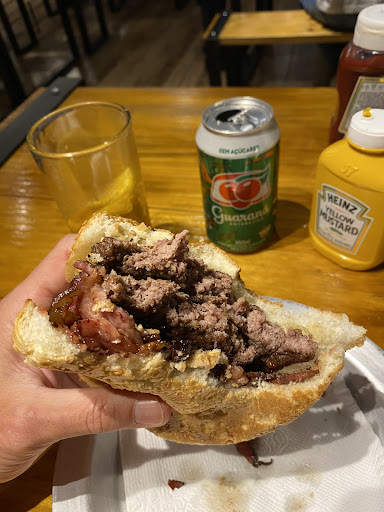Read moreMuito ruim a experiência da minha família. O pão do hambúrguer era ressecado e esfarelento, se despedaçava todo a ponto de me forçar a comer com prato, garfo e faca. O hambúrguer estava desmanchando também e a impressão era de que eu estava comendo carne moída com pão. Parte do molho ou da carne tinha um torrão de sal que descobri na segunda mordida. Pedi o mate da casa e veio muito, muito doce. A batata frita com cheddar vem num potinho que dificulta retirá-la dali, então acaba misturando tudo. A batata não tem sal, não estava crocante também. Bebidas acabaram. Desconforto pois a maioria são bancos e tem uns encostos improvisados em áreas que possuem divisórias com grades mas ao encostar, incomoda o vizinho, ou o vizinho te incomoda. A embalagem do ketchup colocado na mesa é de marca, porém da pra ver que foi reutilizada pois estava bem gasta e com adesivos soltando. Infelizmente foi uma péssima experiência e...