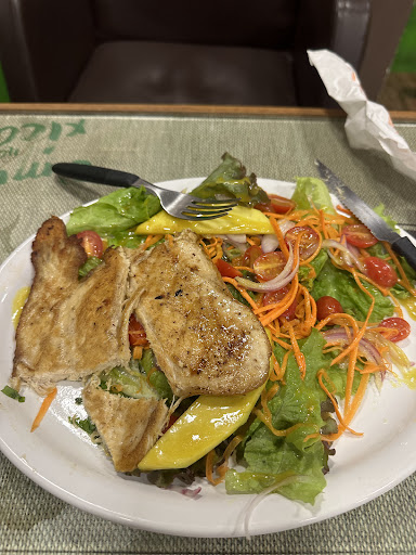 Bem suficiente… localizado dentro do aeroporto, conveniente para quem já está esperando o transfer para outros locais. Pagamos $36 no prato de bife de frango com salada e $17 no cuscuz com queijo e ovo. Bem gostosinho e preço ok para aeroporto. Foi rápido o atendimento. Vi no restaurante ao lado que o prato executivo de frango com salada estava 57, o ambiente pode ser melhor mas o valor tb dobra. Então esse está ótimo,...