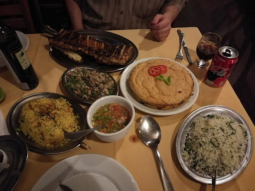 First off, the portions here are ginormous! See pic for how much food you get for ordering two things! Quite pricey because of this. You're paying like 4-8 times the price ordering two main course for two people.