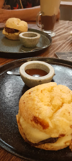 Mesas muitos próximas onde não conseguimos ter privacidade pra conversar e ouvimos tudo que os outros estão falando. Tentei trocar de mesa pois estava acompanhada e precisava ainda abrir meu notebook (mesa pra 2 não estava dando) e ao me deslocar pra uma mesa maior me vetaram pois tinha uma fila de espera (pessoas que chegaram depois de mim) aguardando uma mesa pra 3 pessoas. Pão de queijo gostoso mas pelo valor esperava um pouco mais de recheio. Se você estiver com fome apenas um/o pão de queijo não será suficiente. Base média de gasto por pessoa na faixa de...