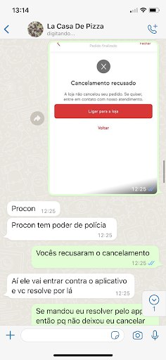 Read moreFiz um pedido pelo Ifood, o pedido não me foi entregue e o pagamento foi efetuado, no aplicativo consta que eu recebi meu pedido as 06:00 da manhã, sendo que eu não recebi NADA e mais, pra que eu iria querer recebrr uma pizza as 06:00 sendo que...