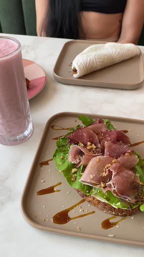 Read moreLugar bem aconchegante com ambiente interno climatizado e externo ao ar livre, atendimento muito bom so q os pedidos demoraram um pouquinho a chegar mas valeu a pena pelo capricho e todos os pedidos chegaram de uma vez, o smoothie morango parecia um iorgute de tão cremoso e saboroso , a toaste de Parma mto saborosa porém pequena para o valor, a tapioca veio errada sem o queijo mas eles substituíram por outra nova sendo q foi percebido pela metade ja é veio com um desenho de alto relevo nela bonito e bem criativo , café coado na hora na frente do cliente e o croissant a massa perfeita como deve ser digamos q e o quarto estabelecimento q serve um perfeito, estacionamento pequeno na frente, cobra 10%, fácil acesso do lado do Goldem Shopping, lá servem uma variedade de doces e tb...