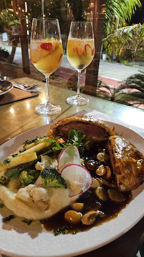 Os drinks refrescantes com frutas frescas completam a experiência, além da excelente localização com vista para a avenida e o mar ao fundo, criando um clima ideal para jantares especiais ou encontros marcantes.