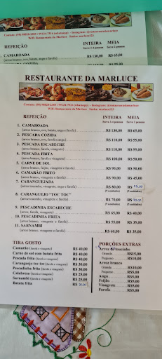 Localizado um pouco depois do Porto do Mocajutuba e em pleno contato com a natureza e o ecossistema local. O restaurante da Marluce a princípio é um daqueles lugares que você está passando, olha e não dá nada por ele. Apartir do momento que vice adentra o local , você se depara com uma vista maravilhosa de uma entrada de mar que serve de passagem para os barcos de pesca que vão em direção ao porto. O ambiente é muito aconchegante, a comida é boa e feita na hora, LEMBRANDO QUE A MARLUCE É UM RESTAURANTE que vende principalmente frutos do mar mas como dito também serve outras opções NA PARTE DE PETISCOS. Minha única crítica é o acesso para a parte das mesas que é uma descida bem acentuada e mesmo com o corrimão para Se apoiar ainda é um pouco perigoso para idosos, o piso precisar melhor trabalhado para evitar acidentes onde as pessoas venham a escorregar, o banheiro é higienizado. Fora isso o restaurante da...