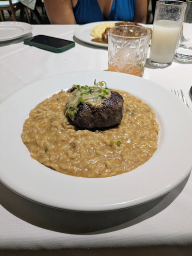 Os pratos da mesa foram: Polvo a lagareiro, Saltimbocca Alla Romana, Ravióli de cupim e Tornedor de filé com queijo gorgonzola e risoto de shitake (minha escolha). A carne tava excelente, ao ponto, muito gostosa, assim como o tempero do risoto, mas infelizmente o risoto tava quase morno e tinha passado muito do ponto. Meu namorado não gostou do molho quatro queijos, mas adorou o ravióli de cupim. Os outros pratos foram elogiados e todo mundo saiu satisfeito. Não sei se lá precisa de reserva, mas fomos num domingo a noite e tava bem cheio.