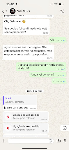 O Villa Sushi me desapontou. Pedi 3x em longo espaço de meses, e nas três vezes esperei 2h ou mais para receber. Sendo que em uma das vezes me ligaram às 00h40 pra fazer a entrega e obviamente eu já estava dormindo e não atendi. Hoje pedi mais uma vez pensando que seria diferente, porém, esperei 1h 40min, sendo que no site diz que a previsão de entrega é de 40min. Fico feliz que a loja tenha crescido em número de clientes, porém, da mesma forma a loja deveria aumentar a equipe para oferecer um bom atendimento ao cliente. Até mesmo no WhatsApp eles não respondem, então fica difícil se comunicar. Diante disso, não recomendo a quem for fazer pedido de delivery, ou você pede cedo e saiba que vai esperar mais de 2h pra chegar em seu domicílio.