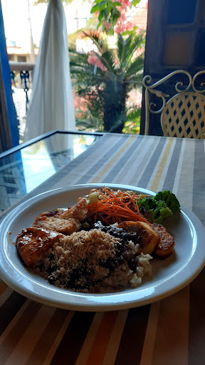 Atendimento acolhedor em um ambiente muito caseiro. Dentre os pontos fortes, o local em chamou muito a atenção: decoração simples e bonita, mesas de ferro antigo, música ambiente ótima para um momento de almoço. Ambiente ventilado e iluminado, com muitas plantas.