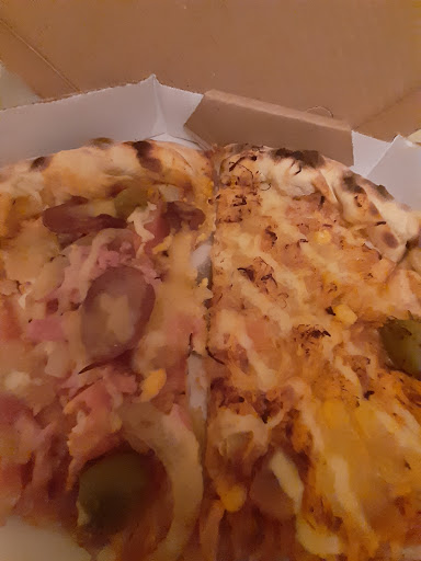 Read moreA pizza é boa, porém nunca presenciai algo tão bizarro em toda minha vida, viemos em 3 pessoas, e pedirmos 3 pizzas, sendo 2 salgadas e uma doce, após comermos a salgada, os pratos ficaram sujos de queijo e catchup, então eu solicitei que nos trouxessem 1 prato limpo, por incrível que pareça eles não trouxeram alegando que não fazem troca de prato, e disse que é norma da casa o cliente usar o mesmo prato. Simplesmente diquei sem acreditar quando a moça disse isso com Todas as letras. Na cidade tem várias pizzarias, essa aqui eu não volto e não recomendo. E OLHA QUE O AMBIENTE EWTAVA VAZIO Detalhe pedimos pra melhor 6 fatias para viagem, reparem na foto abaixo a maneira que embalaram, uma fatia por cima da...