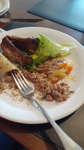 As mesas são grudadas umas nas outras e a circulação é péssima. O buffet também fica num espaço mais recluso. Mas o pior é a gordura para todo lado. O chão é escorregadio e no banheiro era pior. Até para urinar, fiquei escorregando de tanta gordura no piso. A comida tem pouca variedade e não é ruim, mas também não chama a atenção.