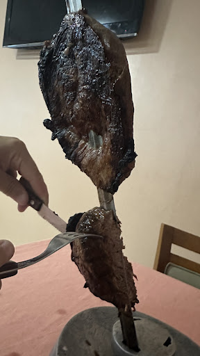 Pedimos um almoço para duas pessoas, churrasco de alcatra, delicioso e muito bem servido, serve três pessoas tranquilamente.