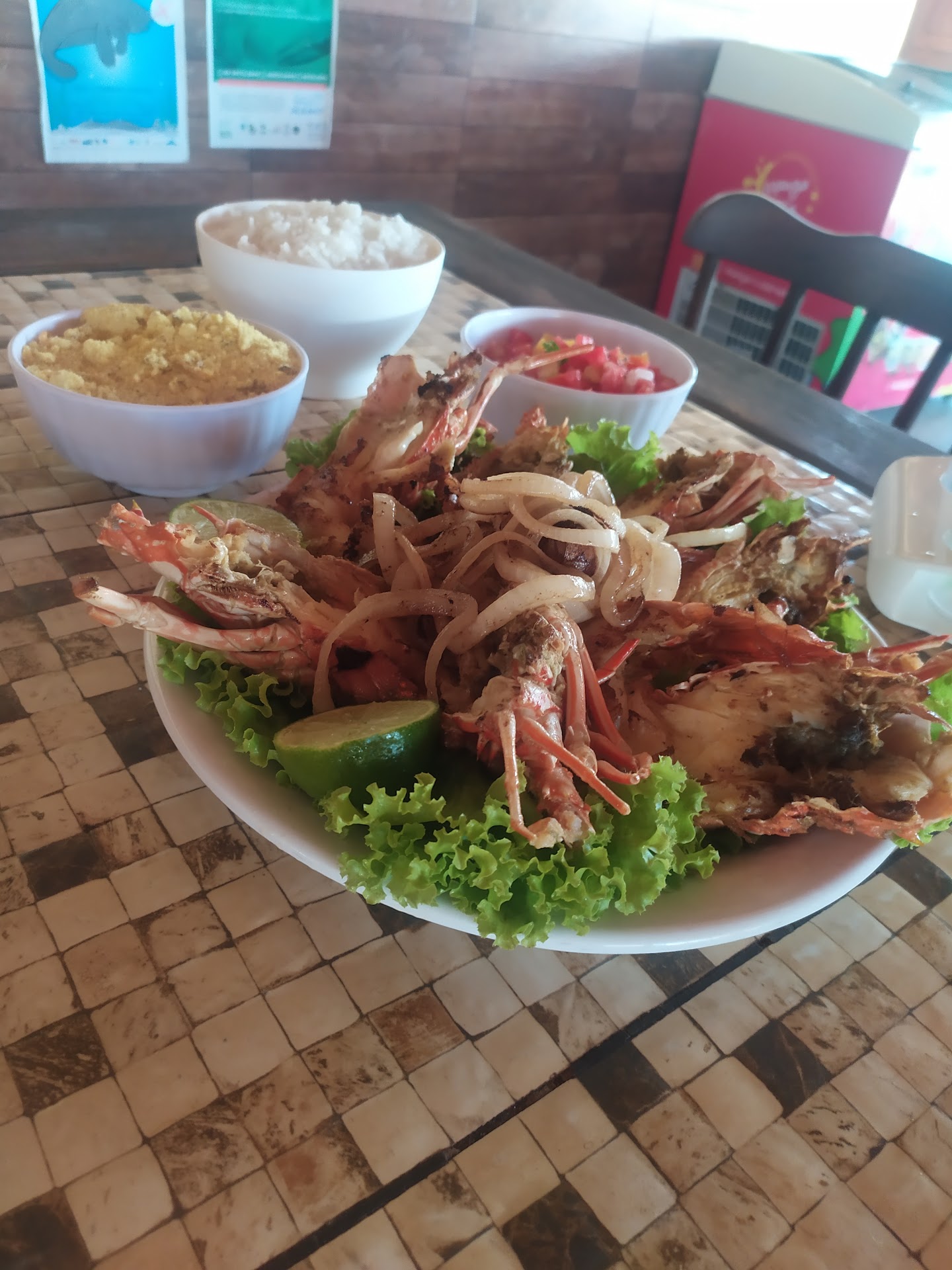 Read moreAssim que chegamos pedimos caldinho de camarão, muito bom, o gosto do camarão é forte e veio com muitos pedaços de camarão. Comemos um queijo empanado em cubos que vem acompanhado de mel, uma delícia. Pedimos também um camarão crocante, porém o garçom não explicou direito como ele era e não nos agradou muito pois é empanado apenas no gergilim e nem é crocante e o valor é 95,00. Um ponto negativo é a demora quando pedimos alguma comida, até o caldinho que normalmente é rápido demorou. Além disso, eles cobram couver e não avisam previamente, nós ficamos na parte da areia e não notamos que o cantor estava no restaurante que estava nos servindo. Mas no geral o local é muito bom, os garçons vão rápido quando chamamos, tem chuveiro,...