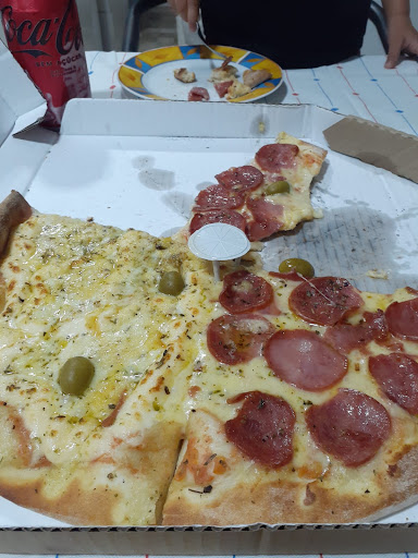 Esses dias comi de calabresa, quatro queijos e uma de galinha milho e bacon. Todas muito boas e gostosas!