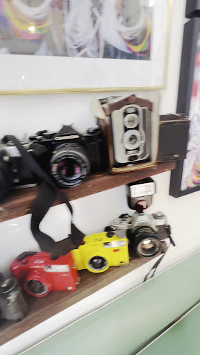 O diferencial aqui é a decoração e a boa energia do dono, o Adriano. Foram 3 anos investidos por ele para montar um acervo de máquinas antigas, de todos os tipos. Câmeras fotográficas, principalmente, mas também de escrever, decorando o espaço inteiro.