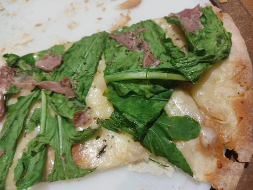 Read moreSe dependesse unicamente da pizza, eu teria dado as 5 estrelas. É deliciosa, fina, crocante e muito saborosa. Porém, quando frequentamos um lugar, não pagamos apenas pelo consumo em si, como também pelo ambiente, serviço, etc. Quanto ao ambiente, há basicamente 3:um barzinho de espera (muito bom. Você pode tomar alguns chopps deliciosos enquanto espera), a varandinha externa e a área interna climatizada. Os banheiros são ok também, limpos. O que não agrada é o serviço. Oa garçons são completamente despreparados. Pedi pra trocar a roska de jabuticaba pela de morango (porque estavam estragadas) veio de novo a de jabuticaba. Meu namorado pediu uma cerveja, o garcon foi ver se tinha, não tinha, e ele não avisou. Depois ele pediu outra, novamente não tinha. E isso se repetiu. Uma confusão que só. É algo desagradável. Peço para os gerentes, donos, sócios, seja lá o que for, que oferecem um curso para seus funcionários, ninguém merece passar por essa situação. Conluindo, pizza muito boa mas não vale a pena o estresse. Não...