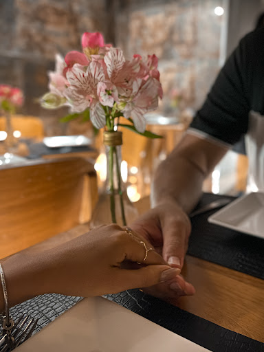 Nossa reserva foi confirmada, mas ao chegar descobrimos que havia um evento privado no salão interno, algo que não nos foi informado. Fomos realocados para a área externa, cujas cadeiras de plástico pretas contrastam bastante com a proposta do restaurante. Um mobiliário mais acolhedor, como vime ou madeira, já traria outro nível de conforto e harmonia com a proposta arquitetônica do espaço.