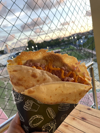 O Atendimento é bom, o local é bem legal tem uma vista pro campo que é bem legal, principalmente se tiver tendo eventos no dia. O Preço é bem justo pensando na qualidade do produto e na quantidade. Varia entre R$20 e R$35,00. O tempo de espera é curto entra 10 e 15 mim. O produto é muito bom, recomendo, peguei ambos com massa de crepe e os dois sabores estavam incríveis. Mata a fome de um adulto q come bem. Super...