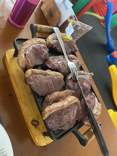 Read moreEntrada de queijo coalho estava boa, no ponto. Pedimos uma picanha importada para 3 a 4, mau passada. São 8 pedaços de tamanho razoável que deixou as 4 pessoas satisfeitas, quem come muito, vai querer mais. Se não tirar logo da chapa, não vai comer mau passada. A farofa de banana estava muito boa, a vinagrete bem em um pote que parece uma tampinha de garrafa pet de tão pequeno, poderia aumentar essa quantidade já que o prato serve até 4 pessoas. Veio tbm feijão de cerda ou chamado também de feijão fradinho, arroz e uma cebola em tiras, em uma tampinha de garrafa pet, aí eu até aceito, pois poucos gostam de cebola. Essa chapa ficou um pouco mais de R$ 60,00 por pessoa. Estacionamento em abundância, não tive dificuldade de estacionar, o terreno ao lado todo de estacionamento caso não ache vaga na frente do restaurante. Restaurante dividido em 2 ambientes, um externo, na varanda e outro interno com ar condicionado, um grande salão tipo refeitório, com parquinho infantil, um bar bem decorado e alguns quadros que remetem ao sertão nordestino. Vagas para cadeirantes só que em uma pavimentação de britas, acho que não é adequado para cadeira de rodas, sugiro que reveja a...