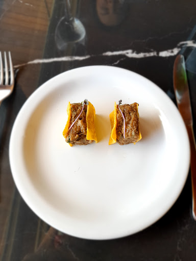 Chegamos ao local, que não estava cheio, e logo nos sentamos. Pedimos o menu do Restaurante Week e, para nossa surpresa, a entrada demorou mais de 40 minutos para ser servida. Observamos que outros clientes pareciam estar enfrentando a mesma demora. Não sei se a cozinha estava com equipe reduzida, mas a espera foi excessiva — ainda mais considerando que a entrada era apenas pão e carne crua.
