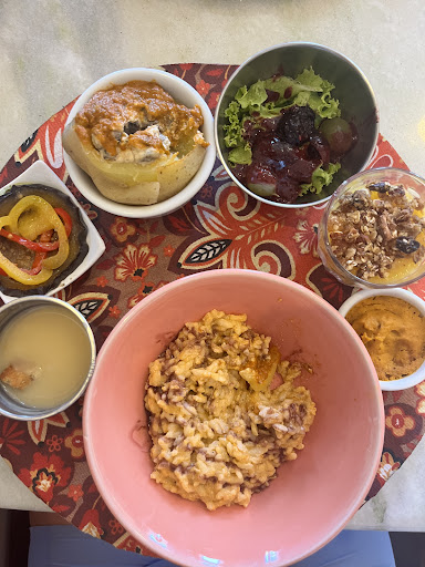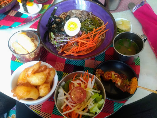 Minha primeira visita ao Shanti (no Rio Vermelho, próximo ao acarajé da Dinha) foi há 3 anos. A segunda visita foi em julho de 2023. A porta do casarão roxo em que está situado o restaurante abre exatamente ao meio-dia e leva a uma escada cheia de vasinhos com plantas e incensos em degraus alternados. No andar superior, há um bar/cozinha, um espacinho para vendas de produtos e três espaços diferentes: um parece uma falsa varanda, com luz natural que vem do teto e plantas ao redor; o segundo é climatizado e possui mesas e cadeiras tradicionais; e o terceiro, mesinhas e "tapetes" para que as pessoas se sentem no chão (que é devidamente acolchoado e coberto). Neste, deve-se retirar os sapatos para entrar. Da primeira vez que fomos, sentei com minha mãe numa mesa padrão (da segunda vez, preferi sentar na área sem sapatos, com mesinhas no chão, almofadas e tatame - e não, não é desconfortável, pois é possível apoiar as costas) e pedimos o menu sem a proteína (da segunda vez, fui no camarão). O menu sem a proteína custa atualmente R$60,00; com peixe é R$70,00; e com camarão é R$75,00 (preços atualizados em julho/2023). Toda semana os menus são dispostos aleatoriamente, sempre de terça a domingo, e cada dia oferece um menu diferente. O atendimento continua sendo bastante cuidadoso, gentil, alegre e eficiente. Quando nossos pedidos chegaram (no dia em que fomos, era o menu Marrocos e, mais recentemente, experimentei o menu Japão), a comida saltou aos olhos - aliás, a todos os sentidos. O cuscuz marroquino, com frutas secas, passas e outras iguarias, acompanhado do pão artesanal (macio e fofo), pastas árabes e falafel (bolinhos de grão de bico e lentilha) estava divino. Havia uma "sopa" de legumes com um toque marcante de gengibre e duas saladas com legumes salteados e mix de folhas com uma pasta de azeitonas pretas por cima. A sobremesa era muito simples e igualmente muito saborosa: pasta de ricota com melaço e frutas secas. No menu japonês, experimentei o lámen, oniguiri, sunomono e gari (uma conserva de pepino e gengibre, levemente picante), tempurá de camarão, a incrível sobremesa de creme de chocolate sobre creme de café, com frutas vermelhas e amêndoas laminadas, dentre outros itens maravilhosos (vide cardápio nas fotos). O ambiente interno chamou a minha atenção pelas referências ao mundo oriental e pelo ar "zen" que ele transmitia. No entanto, o mais notável mesmo foi a sensação de paz que tivemos logo após terminarmos a refeição. É como se aqueles alimentos estivessem tão bem combinados, em tão perfeita harmonia de cores e sabores, que até nosso corpo ficou feliz ao recebê-los (de saboreá-los sem pressa, como deve ser). Foi uma experiência inesquecível, daquelas que a gente sempre quer reviver. Para quem nunca foi, o local abre ao meio-dia e fecha às 16h. Há pontos de ônibus próximos e estacionamento pago (zona azul) em frente ao estabelecimento. Considero o Shanti imperdível. Recomendo!