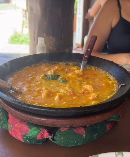 Read moreFui em família e tivemos um atendimento precário. Era apenas nós do lado de fora, ainda assim tivemos dificuldade em pedir algo quando as atendentes estavam na parte de dentro. Os pratos indicam serem pra 2, e mesmo com a guarnição (arroz, pirão e farofa), realmente não são bem servidos a ponto de valer a pena dividir com mais alguém. A moqueca exclusivamente de camarão, vem pouquíssimos camarões e a de peixe veio somente duas postas médias. O sabor de dendê é fortíssimo mesmo pra quem gosta (meu caso), o que tornou a comida um tanto ácida, principalmente pq apenas o arroz não contém ele. Pelo valor cobrado, tanto a quantidade quanto o sabor, deixam a desejar. Há várias outras opções mais em conta, bem servidas e mais saborosas. O ponto positivo é a decoração e localização, bonita...