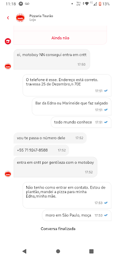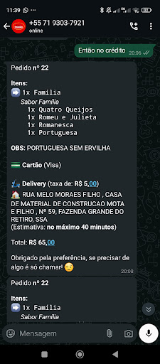 Read moreAtendimento péssimo. Ontem a noite pedi uma pizza as 20:00 da noite, o pedido foi todo confirmado as 20:08 e na mesma mensagem de confirmação informa que a espera máxima era 40 minutos. Passou 40 minutos, 1 hora e nada, fui cobrar no whatsapp e demoravam de me responder até que disseram que a demanda tava muito alta mais que iam enviar, passou quase duas horas, eu falei e não me responderam mais. Simplesmente me ignoraram. Eu nunca fui tão mal atendida em um estabelecimento a ponto de ser ignorada e não ter o meu pedido. Foi a minha primeira experiência e última, nunca mais peço nada....