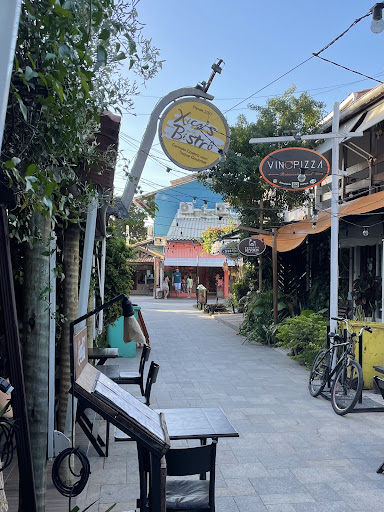 As mesas? Ah, sim, elas são tão simples que parecem ter saído de um tutorial de "Como montar sua própria mesa com caixotes de feira". E o ambiente? O passeio em frente ao estabelecimento é o cenário perfeito para um episódio de "Comida de Rua: Aventuras Perigosas". 🍽️🚶♂️