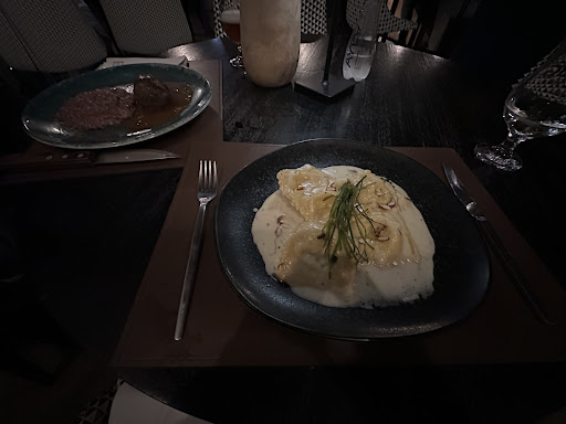 Read moreO restaurante é intimista e romântico, com um clima super agradável. Minha experiência: Os garçons nos ignoraram a ponto de solicitarmos a recepcionista que os orientassem a nos atender, serviram entradas de cortesia para as mesas ao lado e não nos serviram (achei estranho). Entrada: CAMARÃO A PROVENÇAL R$ 89,00, vieram exatamente 4 mini camarões ensopados com 1 tomatinho cereja e algumas fatias de azeitona, eu cheguei a rir porque não fazia sentido vir tão pouca quantidade, me senti mal por ter pago tão caro em um prato sem comida. Prato principal: FILÉ E RISOTO AO VINHO 108,00 a quantidade é muito pequena e faltou sabor. RAVIOLE DE QUEIJO 94,00 estava impecável, perfeito! Se pudesse dar uma dica ao restaurante seria aumentar a quantidade de comida servida nos pratos, até porque o valor cobrado não é baixo. Tivemos que sair de lá e passar no Lucille para comer, e notamos a diferença da quantidade de comida...