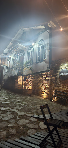 Que lugar incrível! Pra começar o segurança já é uma atração a parte com a voz dele. Ao adentrar, você se depara com uma decoração simples mas extremamente carregada, mas que orna muito bem com o ambiente, o pé direito baixo dá uma sensação de porão, característico de pub's londrinos. A localização da banda é bem próxima ao público o que torna o clima muito mais dinâmico e animado (claro, se a banda for boa, no dia que eu fui no caso, era!). O balcão do bar dispõem de pouca metragem, cabe umas 3 ou 4 pessoas, e como a casa estava cheia, foi necessário ficarmos ali alguns minutos, então vá preparado para poder ter que esperar um pouco até conseguir uma mesa em dia de show. Nos fundos há um segundo ambiente que é praticamente um segundo bar. Tem seu próprio balcão, mesas maiores um pé direito enorme e a parede dos fundos é composta por uma vidraça incrível que dá vista pra uma ouro preto iluminada fantástica. Apesar de Ouro Preto ser muito frio, lá dentro incrivelmente faz uma temperatura agradável, mas esteja preparado pra saída, é congelante a diferença na saída do local se for sair já na madrugada. O valor da cerveja e dos pratos é justíssima para o padrão do local. Todas as garrafas vieram bem geladas. Ao pagar a conta, nos surpreendemos com o valor, ficamos tanto tempo, e nos divertimos tanto que ao notarmos que uma noite (durante um período de 4 a 5h) pra 3 pessoas que se divertiram bastante, bebido algumas garrafas e estavam plenamente satisfeitos tinha ficado em apenas R$112 (incluindo o valor da entrada). Achamos bem barato para tudo o que o local nos proporcionou. Voltarei, COM CERTEZA! Levarei novos amigos COM CERTEZA! Só não avalio com 6 estrelas, pois não dá. Mas seria totalmente justificável! Um dos melhores clubes que já fui. Vale muito a...