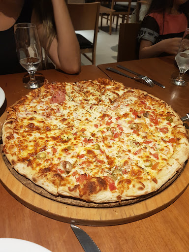 Pizza é a melhor da cidade levando em conta pizzarias que servem no local. Ambiente com acústica péssima, barulho extremo, MTA reverberação, não recomendo ir se for para conversar com amigos ou casal. Além do mais, é mto frequente encontrar várias crianças correndo e gritando pela pizzaria, mas isso os funcionários não tem como controlar infelizmente. Atendimento é bom, ambiente é bonito mas tem esse problema grave de acústica, e os preços das pizzas se justificam pela qualidade, porém demais produtos ofertados no cardápio têm o preço abusivo, se for ir lá, prepare-se para água custando 6 reais e os demais produtos escalam o preço nessa...