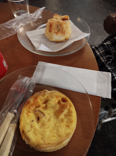 A situação piorou quando nossa comida chegou. A rosca estava dura, com aparência de velha, e a quiche também deixou a desejar, sem sabor. Quando solicitamos a troca da rosca, fomos inicialmente ignorados pelos atendentes. Quando finalmente conseguimos falar com alguém, a atendente pegou a rosca com as mãos e colocou de volta no prato. Para piorar, pequenos insetos caíram no prato durante esse processo. Mesmo diante disso, não ofereceram uma substituição, apenas descontaram o valor da rosca da conta de forma grosseira.