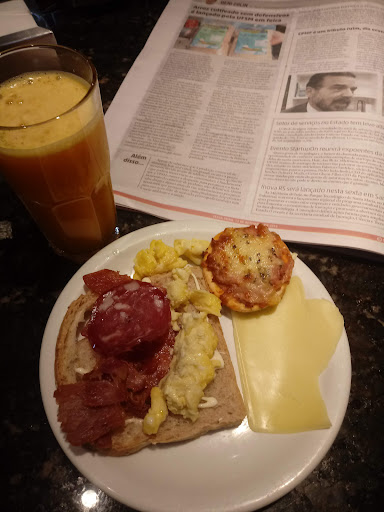 Read moreO cardápio do café da manhã não é muito variado, mas o pouco que tem é bom. Infelizmente não voltarei mais lá: fui com outra pessoa, pegamos as mesmas coisas, mas ela pegou também um café de máquina e por isso foi cobrada "café da manhã" enquanto eu fui cobrada "salgado do balcão" (que é mais caro). Fui reclamar na balança e a atendente me disse que ela pesaria novamente as mesmas coisas que a outra pessoa pegou, para que nós duas pagássemos "salgado de balcão".....traduzindo: queriam que pagássemos MAIS CARO!!!! Esse é o único lugar em que o cliente NUNCA tem razão! Ahhh: "café da manhã"=R$49,90/kg "salgado de balcão"=R$59,90/kg Triste...