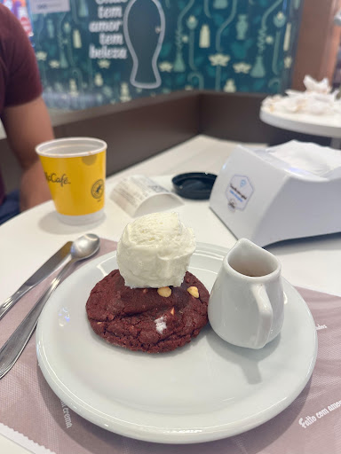 Read moreO pedido foi o cookie com uma bola de sorvete e calda. Delicioso, é possível escolher o sabor do cookie, do sorvete e da calda. Escolhemos o cookie Red Velvet com sorvete de creme e calda de doce de leite. Bela sobremesa. Recomendado, dá para dividir as calorias de uma porção....